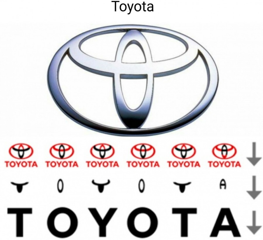 Logotip podjetja Toyota vsebuje tri elipse, ki predstavljajo srce stranke, srce proizvoda in srce tehnološkega razvoja in neomejeno možnosti v prihodonosti. Če dobro pogledate, pa se v logotipu nahajajo vse črke podjetja TOYOTA.