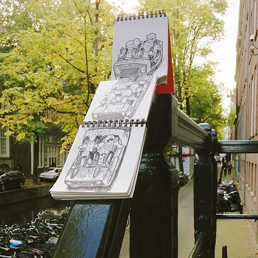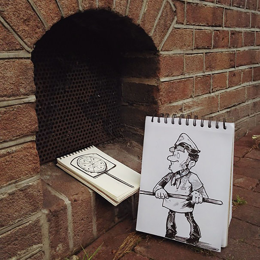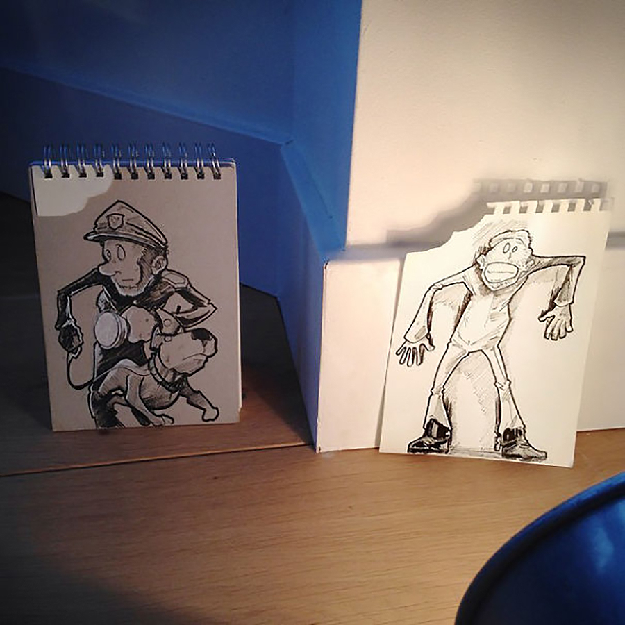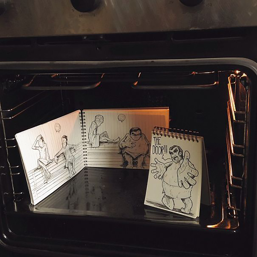Avtor skic, ki jih lahko pogledate spodaj, je priznal, da mu je bilo dolgčas in je s pomočjo svinčnika in zvezka ustvaril komične risbe, ki so prilagojene tamkajšnji okolici.