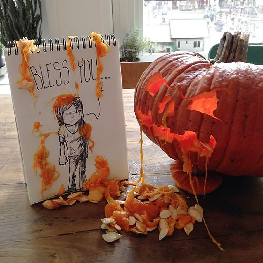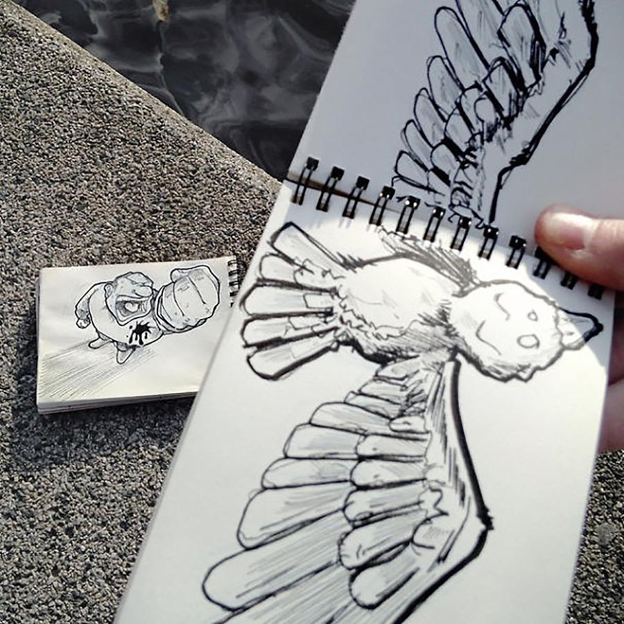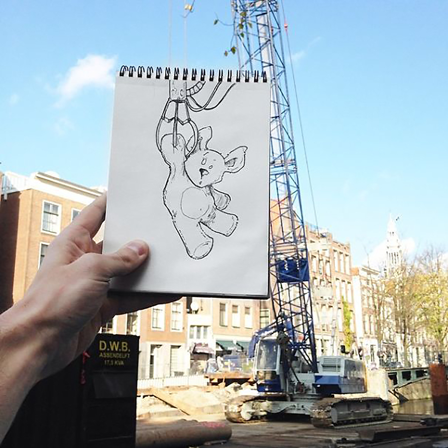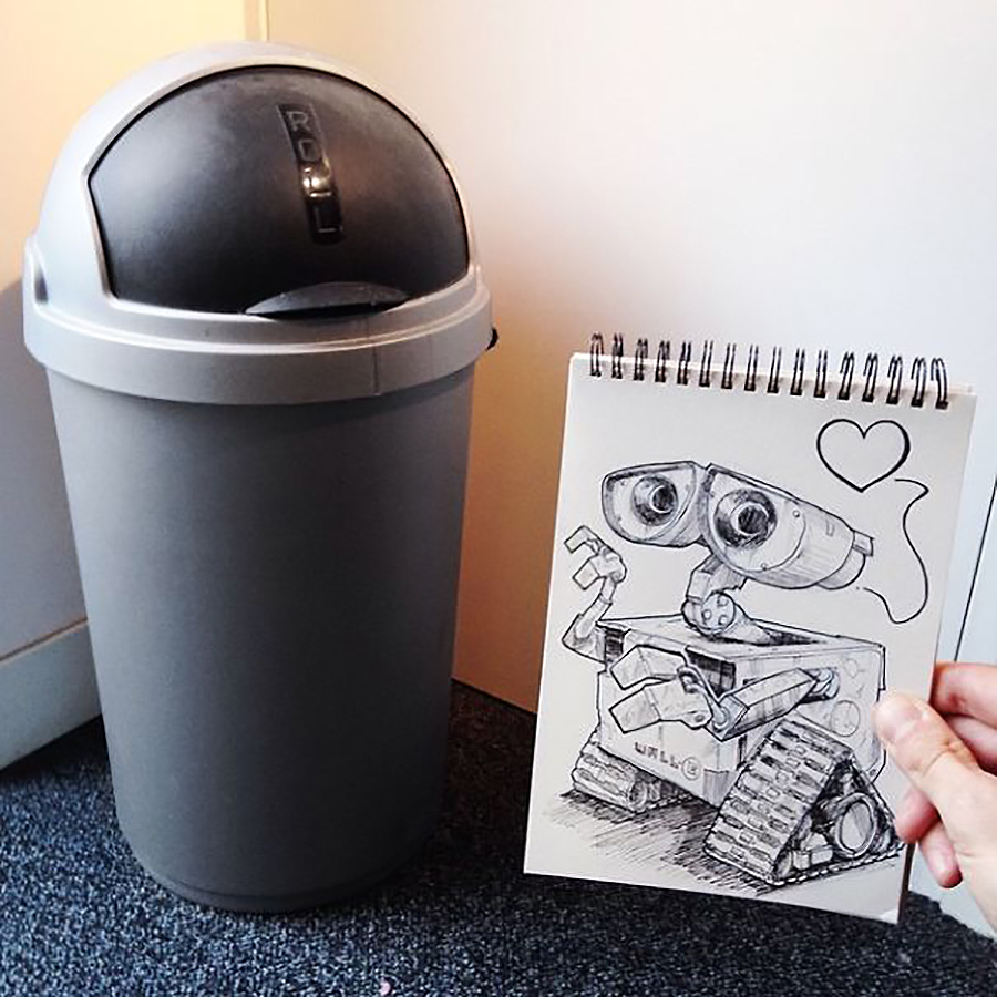 Avtor skic, ki jih lahko pogledate spodaj, je priznal, da mu je bilo dolgčas in je s pomočjo svinčnika in zvezka ustvaril komične risbe, ki so prilagojene tamkajšnji okolici.