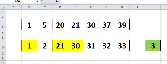 Kakšna je formula v excelu. da prešteje samo celice istih vrednosti v zgornji in spodnji vrstici moj primer je rezultat 3.