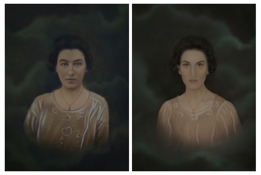 Umetnica portret obdelala s fotografijami prednikov