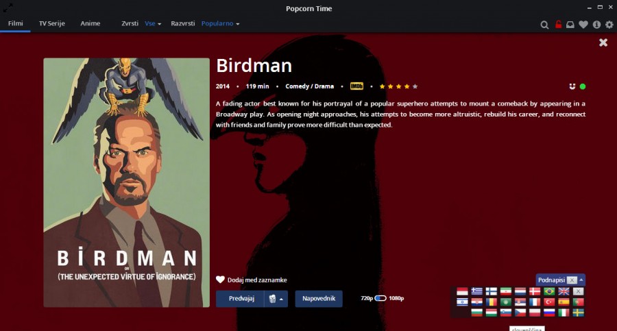 Se pa Popcorn Time še vedno lahko uporabi, če film sam poiščeš na torrent strani in ga potem dodaš.