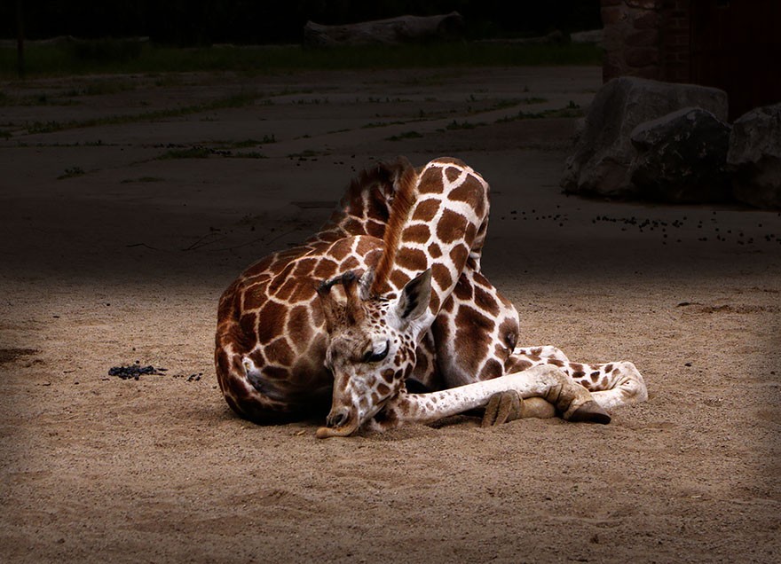 Sem se vprašal, ali žirafe lahko spijo s tako dolgim vratom in kako to sploh zgleda? Pa sem naletel na slike, ki prikazujejo izgled njihovega spanja.