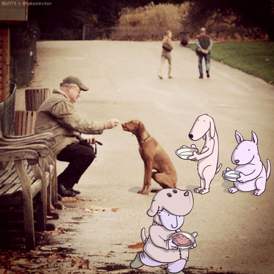 Lucas Levitan je brazilski umetnik, ki živi v Londonu. Ima pa veliko domišljije, saj je fotografije, ki so bile objavljene na različnih Instagram računih, porisal z zelo inovativnimi ilustracijami.
