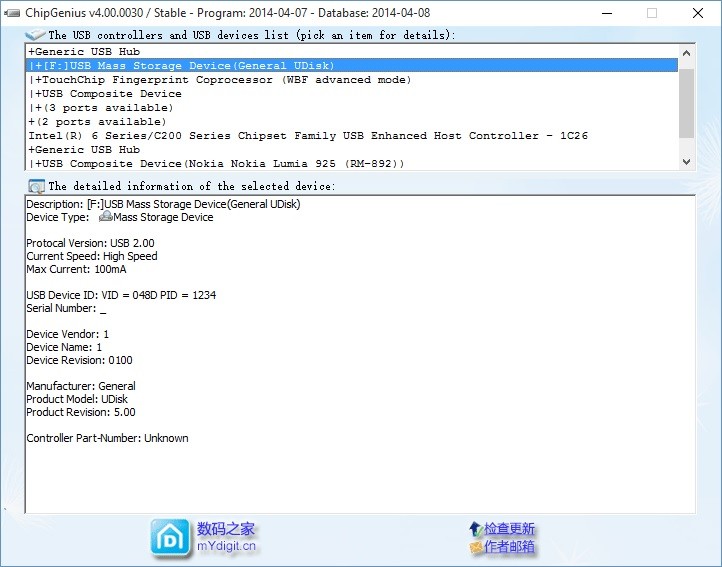Kot zgleda, Chipgenious nima podpore za kontroler na tvojem USB ključku, tako da boš moral poskusiti z eno izmed drugih predlaganih rešitev.