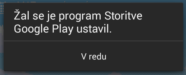 Najprej sem odstranil Google Play storitve z tovarniško različico, potem pa sem z interneta naložil prejšnjo verzijo in jo namestil in sedaj deluje. Vendar je dokaj čudno, saj mi prej s prejšnjo verzijo ni delovalo.