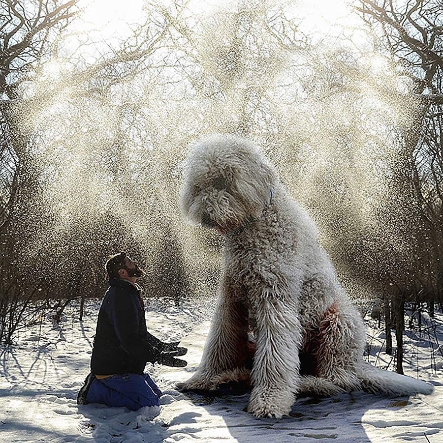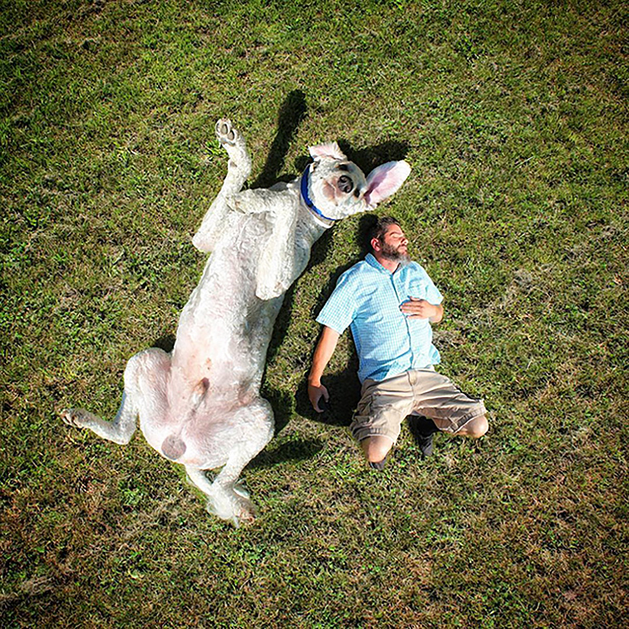 Fotograf s svojim povečanim psom