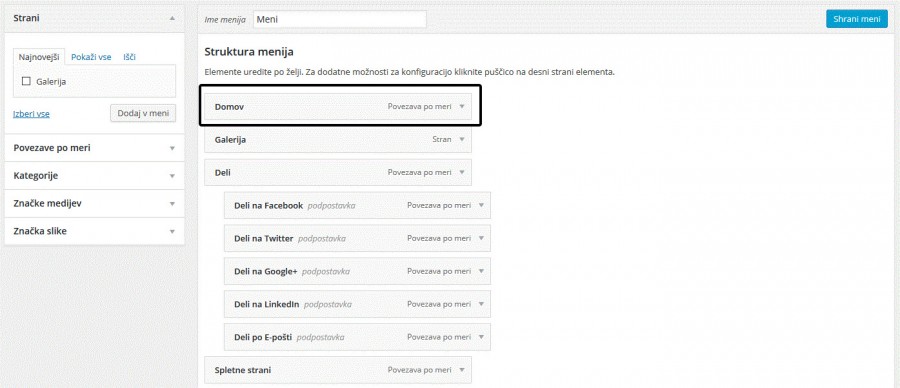 Meni na spletni strani