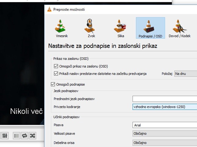 Uspelo mi je. V nastavitvah za podnapise je treba nastaviti privzeto kodiranje na vzhodno evropsko-1250 in je potem OK.