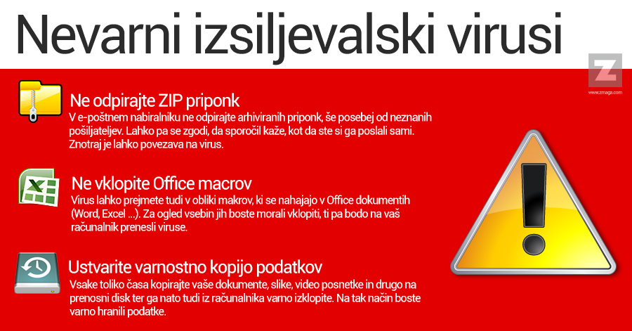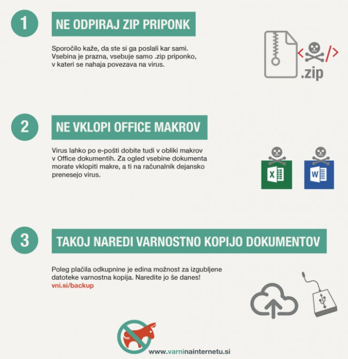 Pozor !!! Izsiljevalski virusi (angl. ransomware) so v tem trenutku tako različni in razširjeni, da se lahko kaj hitro zgodi, da proti kateri od variant še NE OBSTOJA protivirusna zaščita!!!