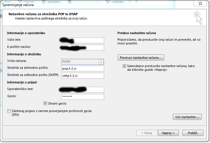 Imam težave s pošiljanjem pošte iz Outlook 2010 ! Dobim odgovor ;