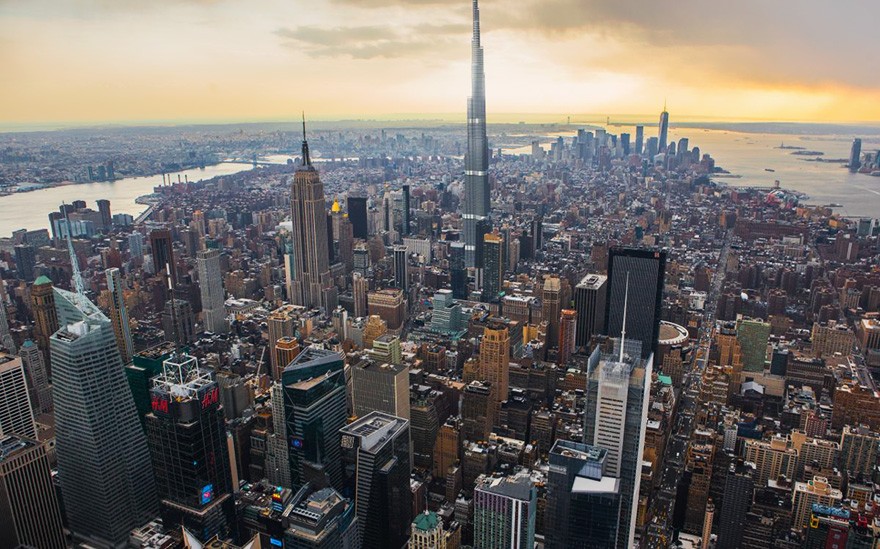 Burj Khalifa, najvišji stolp na svetu, ki meri 829 metrov, bi izgledal tako v New Yorku.