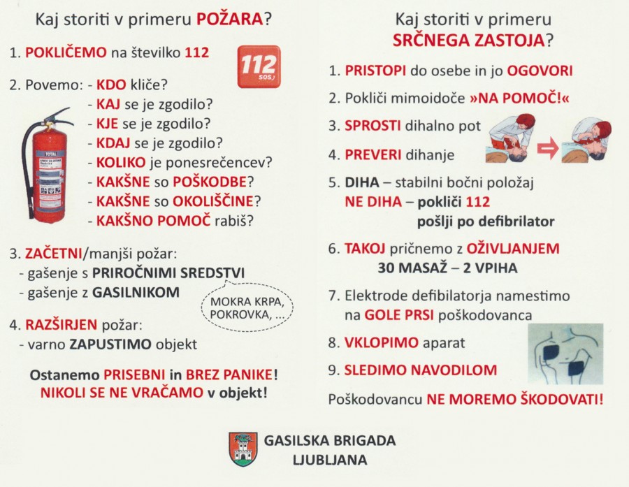 Kaj storiti v primeru požara ali srčnega zastoja? Spodaj si lahko pogledate kratka navodila, ki jih je pripravila gasilska brigada v Ljubljani.