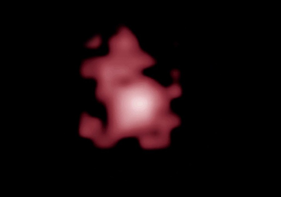 Znanstveniki so na podlagi hitrosti potovanja svetlobe in oddaljenosti galaksije izračunali, da je na sliki galaksija stara 13 milijard let.