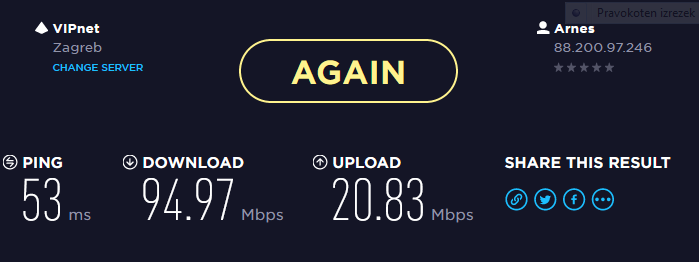 sedaj sem se priključil v službi na arnesovo mrežo in deluje vse doma zmage nisem odprel arnes pa.