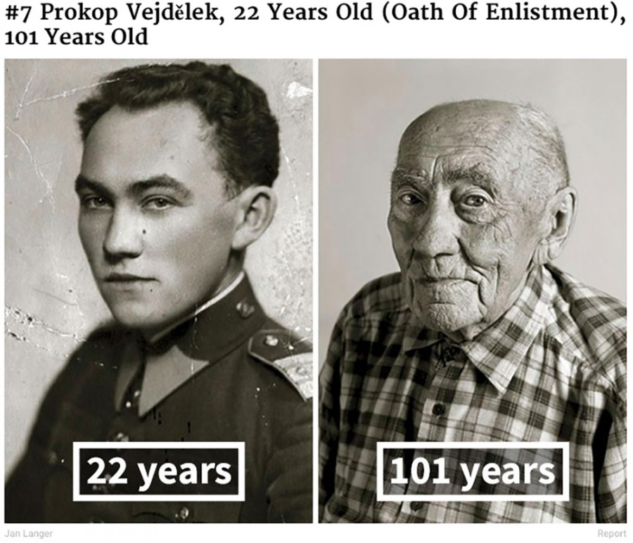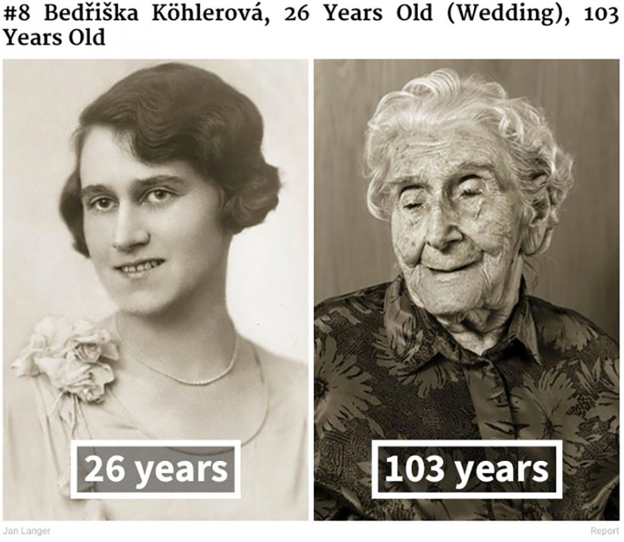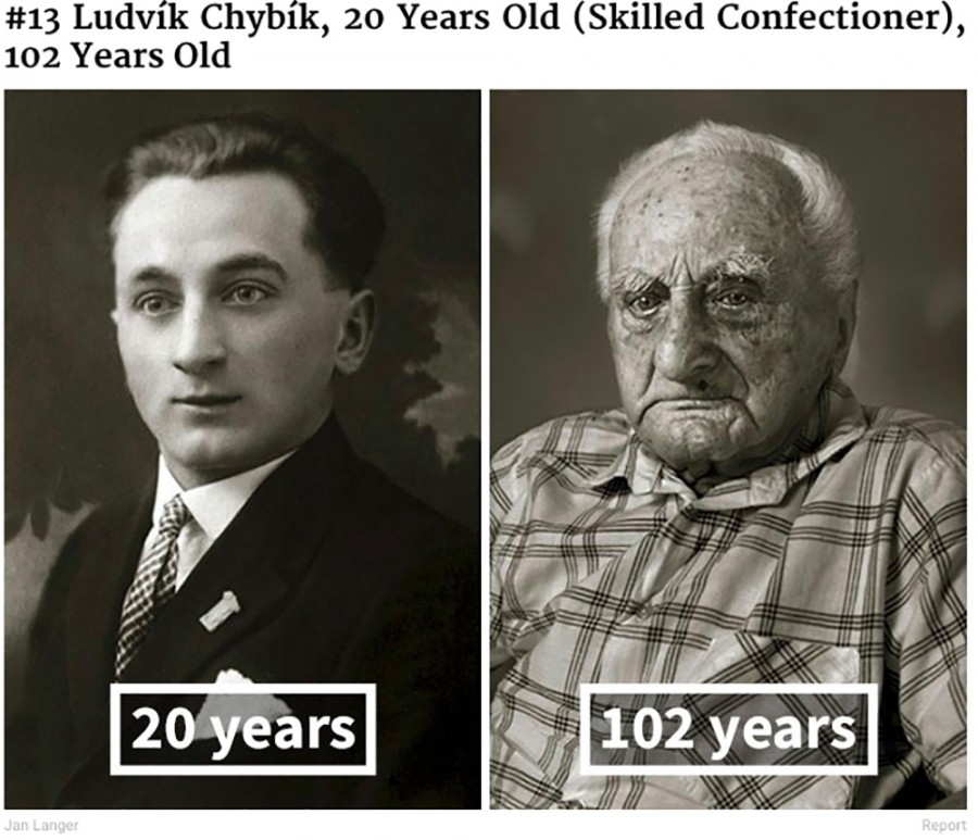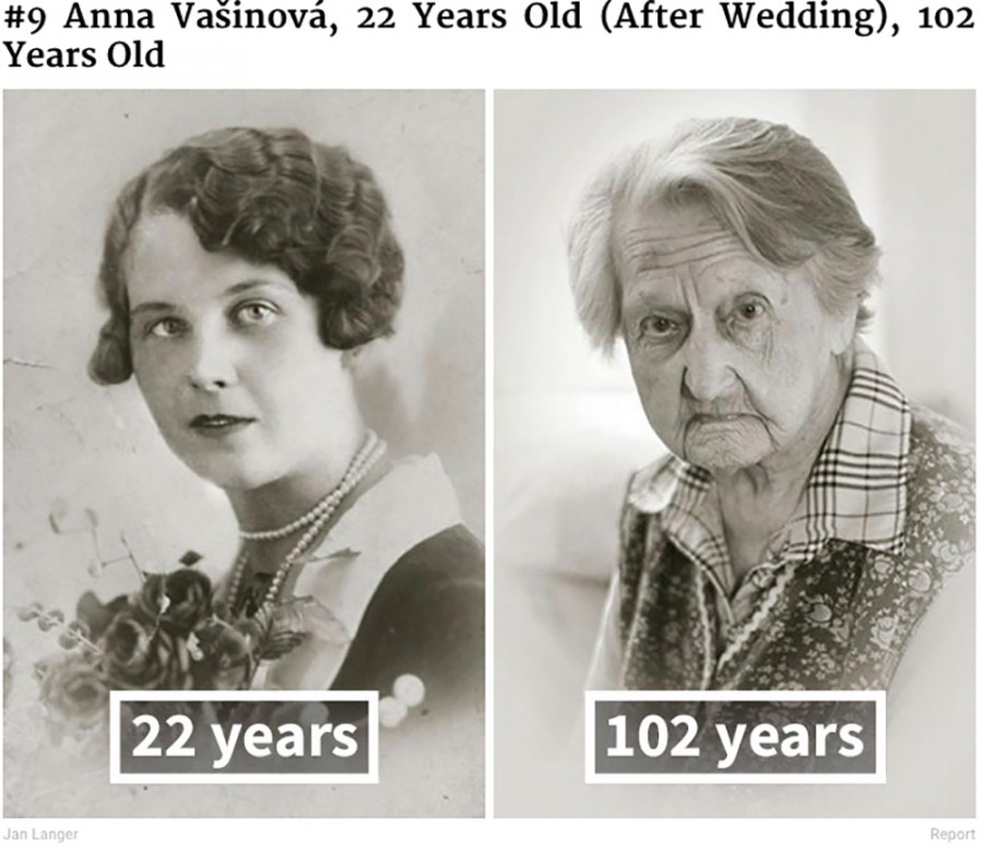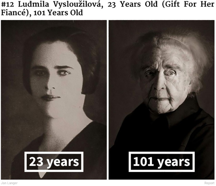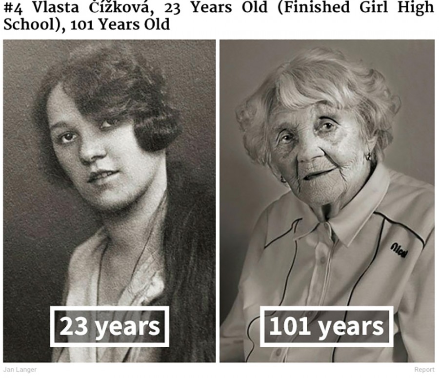 Češki fotografi Jan Langer si je vzel čas in fotografiral ljudi, ki štejejo več kot 100 let in nato fotografije primerjal s starimi, kjer so bili ti ljudje še zelo v mladih letih. Rezultat je veličasten in mislim, da vam bodo slike zelo všeč.