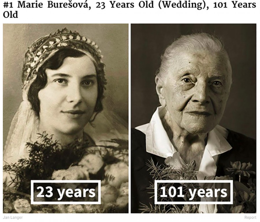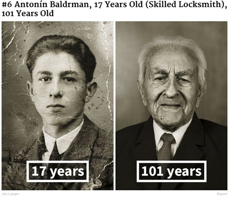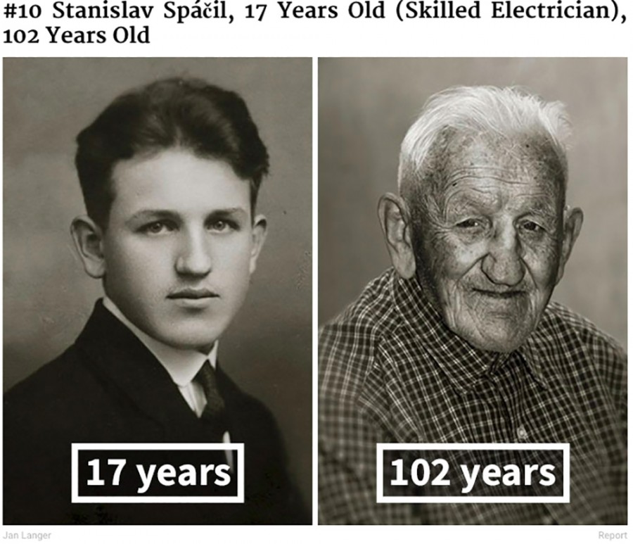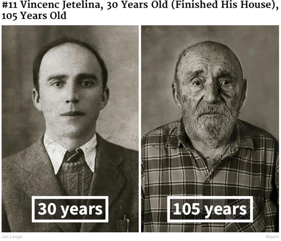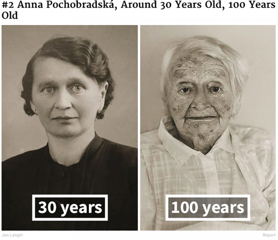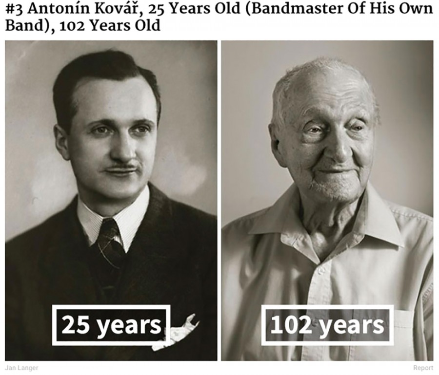Češki fotografi Jan Langer si je vzel čas in fotografiral ljudi, ki štejejo več kot 100 let in nato fotografije primerjal s starimi, kjer so bili ti ljudje še zelo v mladih letih. Rezultat je veličasten in mislim, da vam bodo slike zelo všeč.