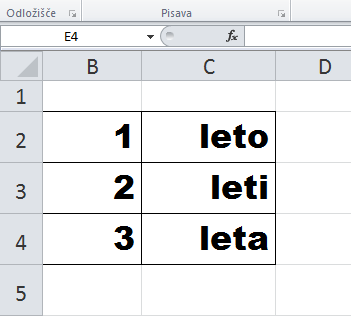 Karero formulo uprabiti v EXCELU da se v stolpec C vpiše slovnični pravilni izpis kot na sliki.