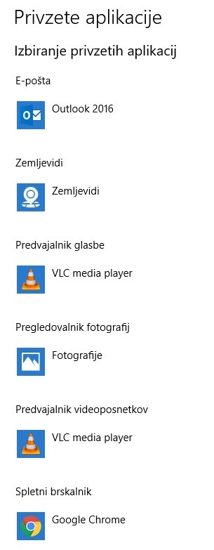 Privzeta aplikacija za e-pošto je Outlook 2016