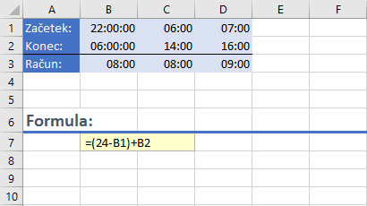Kako se v excelu izračunajo nočne delovne ure npr. od 22:00 do 6:00 ure? Do sedaj sem ure spremila ročno npr. 10:00 do 18:00 ter nato uporabila funkcijo za odštevanje. Ali obstaja kakšna druga možnost?