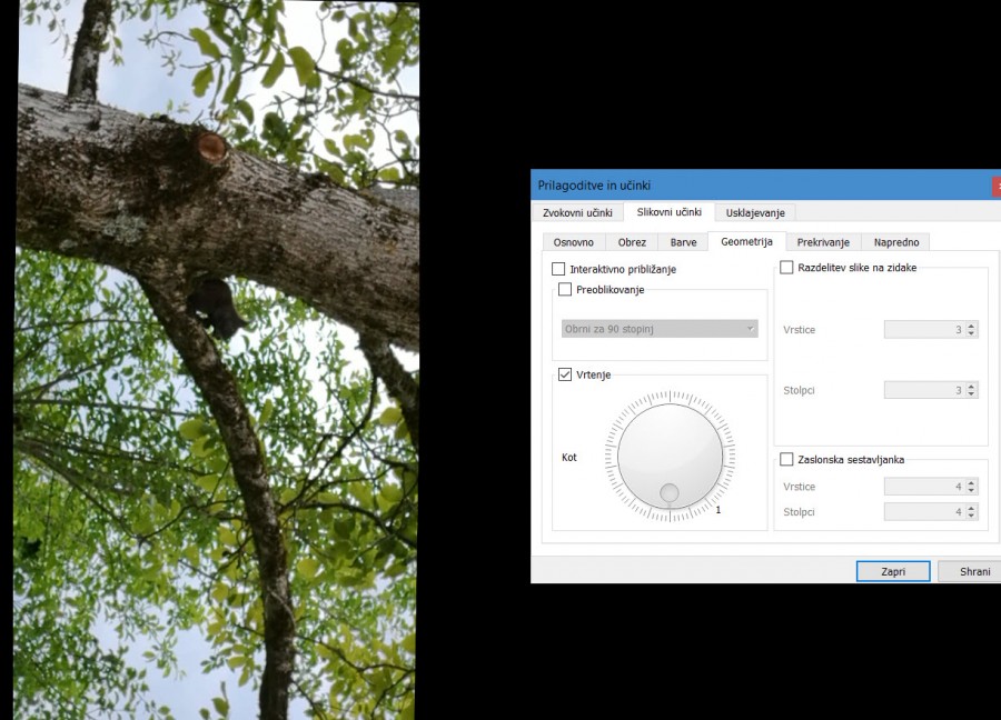 Če to poskusim popravljati v VLC, se posnetek sicer obrne pravilno, ampak je kvadraten - odrezan. Filme bi rada usklajevala in urejala na računalniku, pa seveda ne gre.