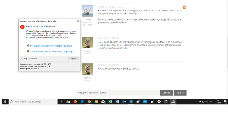 Pozdravljeni, imam težave s varnostnim kopiranjem na zunanji disk . VARNOSTNO KOPIRANJE SE NI USPEŠNO DOKONČALO ! KODA NAPAKE 0X80070013