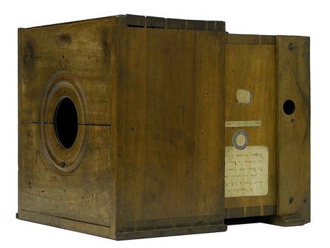 Še kamera, s katero je Nicéphore Niépce (rojen leta 1795) ustvaril prvo fotografijo. Več informacij na tej povezavi in tudi tej povezavi.