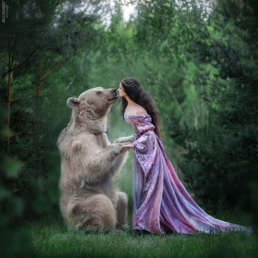 Stepan je 28 letni rjavi medved in je v Rusiji precej poznan. V njegovi mladosti ga je posvojil par in ga tudi navadil na sobivanje z ljudmi. Znana ruska fotografinja Mila Zhdanova je s pomočjo Photoshopa ustvarila resnično lepe fotografije.