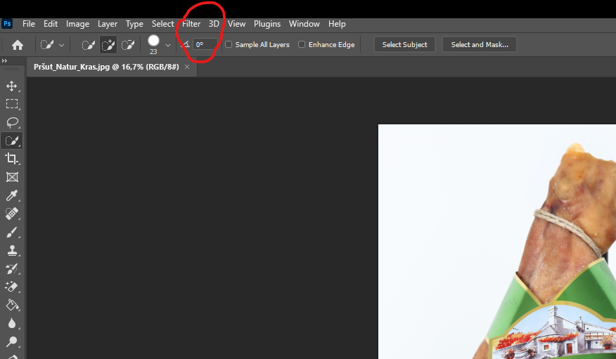 Čemu služi nastavitev kot v photoshop 2021 Quick Selection Tool prilagam sliko