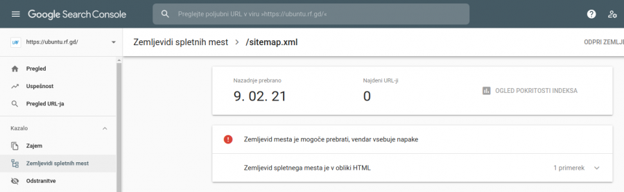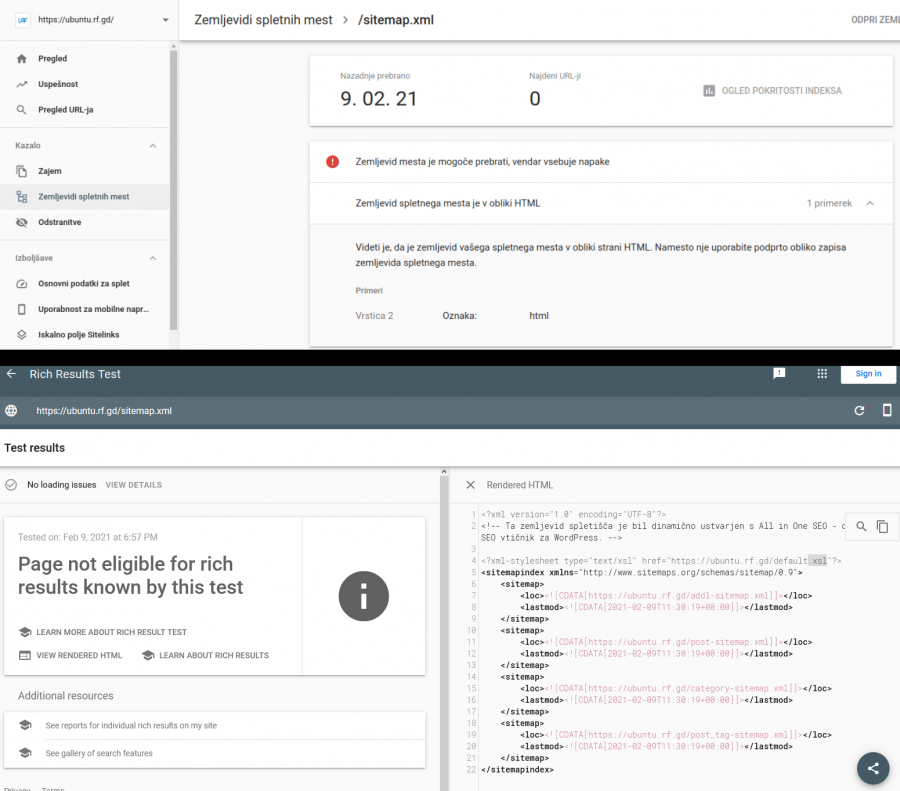 Pred kratkim sem naredil Wordpress spletno stran, ampak je ne morem dodati v Googlov iskalnik. Piše, da je "Zemljevid spletnega mesta je v obliki HTML". Ne vem, kaj naj naredim.