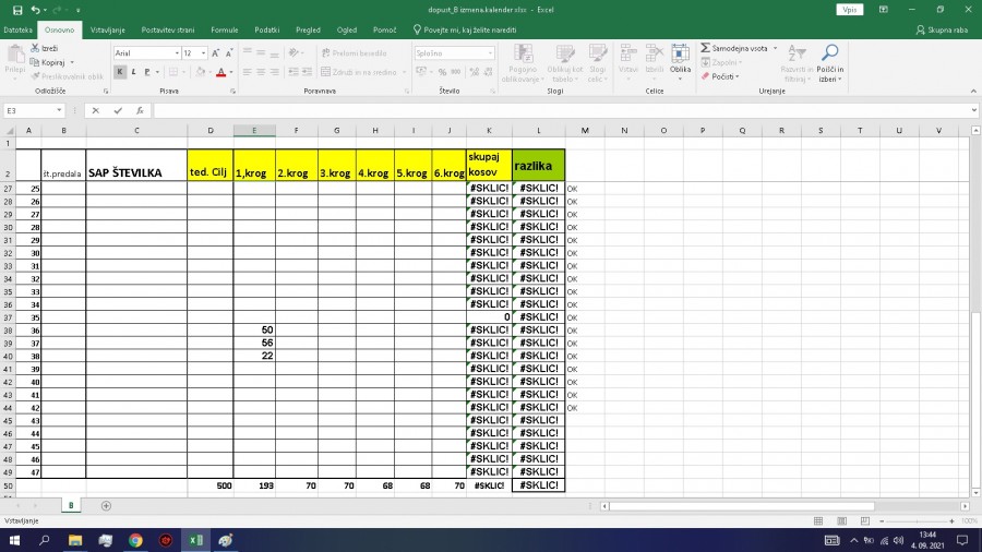 Potreboval bi eno tabelo v excelu v kateri bi samodejno seštevali številke ki bi jih vnesel v polja. V datoteki boste videli kaj sem mislil no upam da boste zastopili.