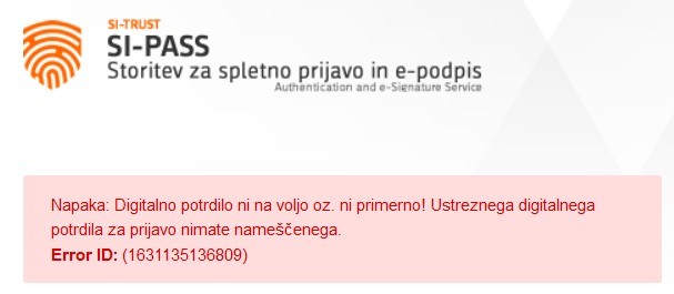 Pri tej strani se mi pojavi zopet napaka "Napaka: Digitalno potrdilo ni na voljo oz. ni primerno! Ustreznega digitalnega potrdila za prijavo nimate nameščenega. Error ID: (1631171742269) "