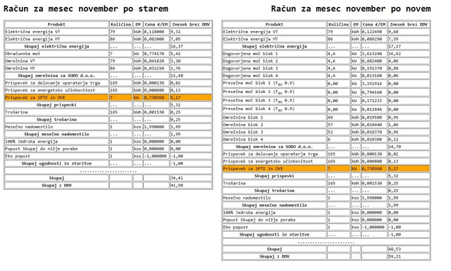 To je nov cenik omrežnine sama porabljena energija se plača posebej.