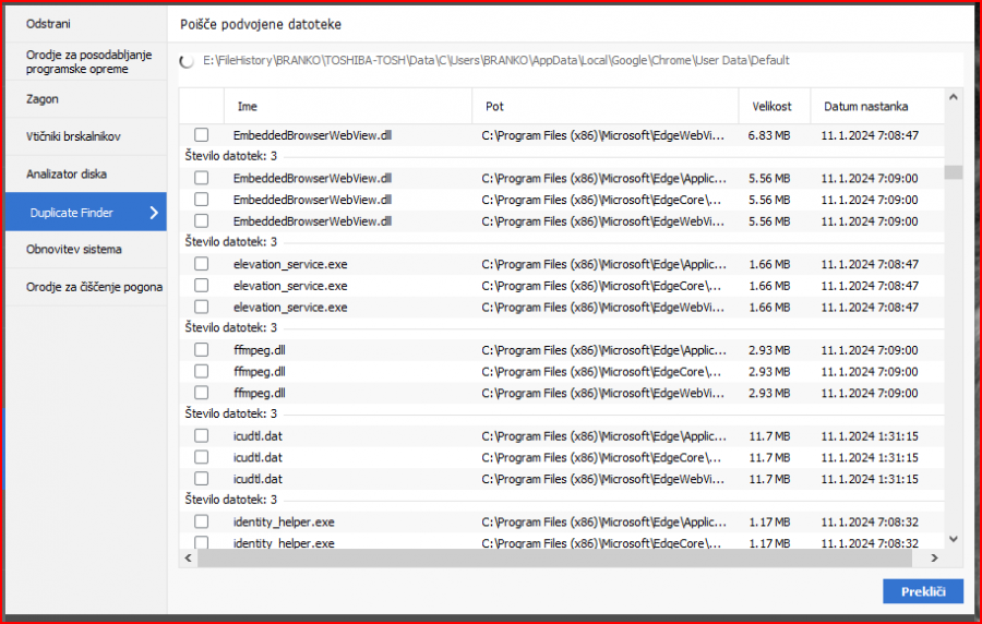 Po moje bo bolje, da datoteke, ki niso podvojene slike, pustiš pri miru. Ker če zbrišeš .dll, .dat ali .exe datoteko, bo hitro kaj nehalo delati.