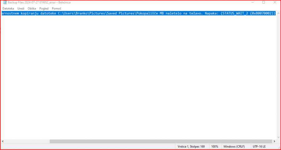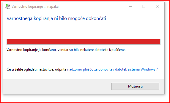 težave imam z varnostnim kopiranjem WIN 10 .Po končanem kopiranju se pojavi datoteka ERROR ki onemogoča zaključek varnostnega kopiranja . Kaj naj naredim ?