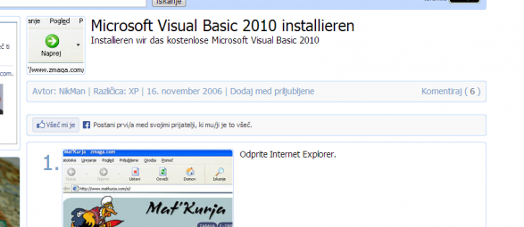 Naslov starejše lekcije se prepleta z nemško lekcijo za namestitev VB: