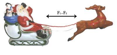 Povedano drugače, če jelenček vleče sani z neko silo, potem bodo sani vlekle jelenčka nazaj z nasprotno enako silo in vsota teh sil je enaka nič.