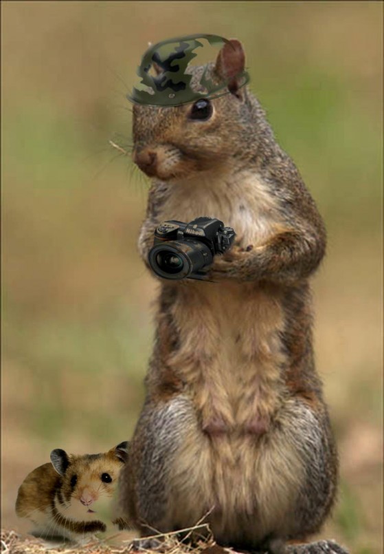 Pozdravljeni. Sem nov v Photoshopu in bi se rad marsikaj naučil. Zaenkrat sem se že naučil nekaj iz vaših lekcij, zato hvala. Nekaj slik sem že preuredil ena iz med teh je tudi ta. Vem da čelada malo čudno zgleda in da se hrček tudi ne ujema najbolje.