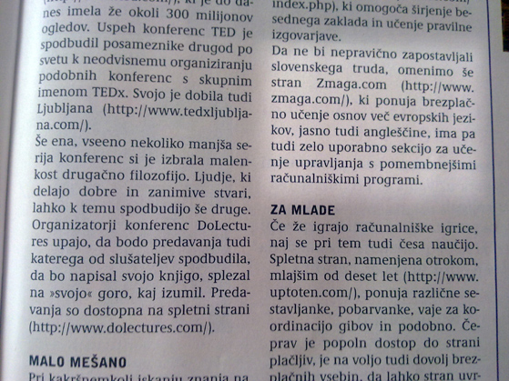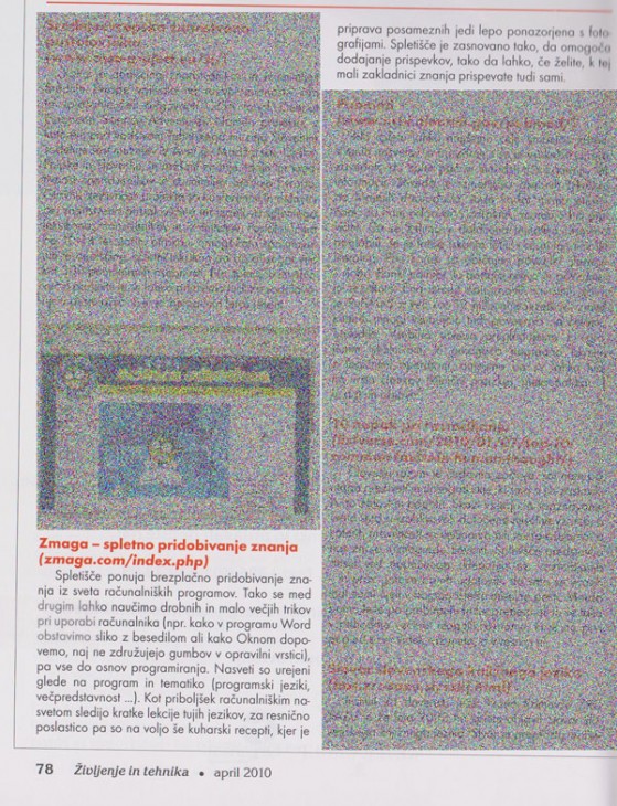 Odlična in kakovostna revija Življenje in Tehnika je objavila kratek članek o spletni strani v njihovi aprilski izvedbi.