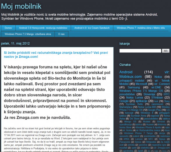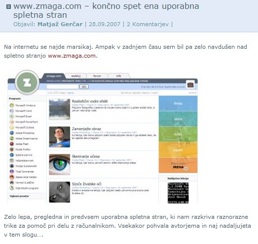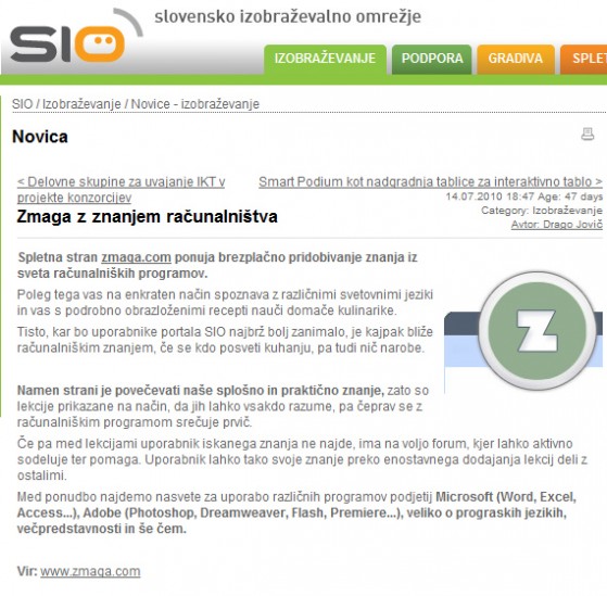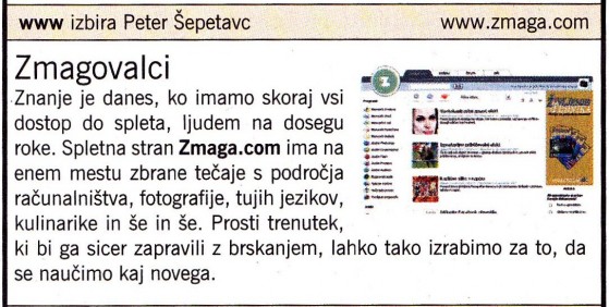 V revji Mladina (27. avgust 2010, stran 67) so v članku E-ZNANJE, ki ga je napisal Staš Zgonik, omenili spletno strani zmaga.com, kot slovensko stran, kjer se lahko učite svetovne jezike in računalniške programe.