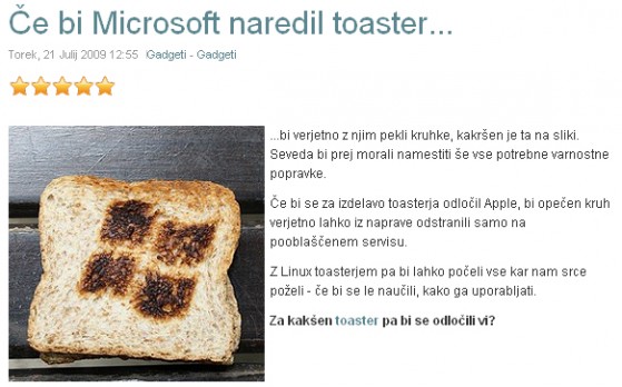 Zamislimo si kakšen toaster bi naredila Microsoft in Apple, ter kakšen bi bil Linux toaster.