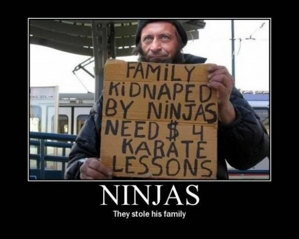 Ninje so mi ugrabile družino. Rabim 4 dolarje za lekcije iz karateja.