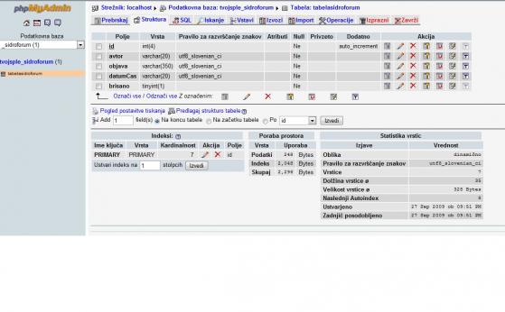 Še en nasvet. V tabeli imaš za datumCas izbran tip varchar, kar je v bistvu navaden tekst. Raje uporabi pravilni tip DATETIME, da boš lahko potem tudi urejal po datumu.