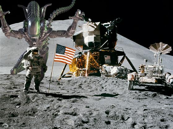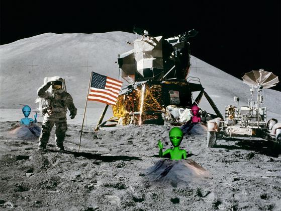 Le kako so lahko bili na luni, če pa se jo vidi v ozadju?