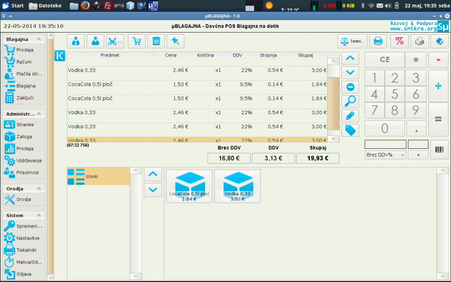 Brezplačna odprto-kodna POS Blagajna na dotik - mikroBLAGAJNA