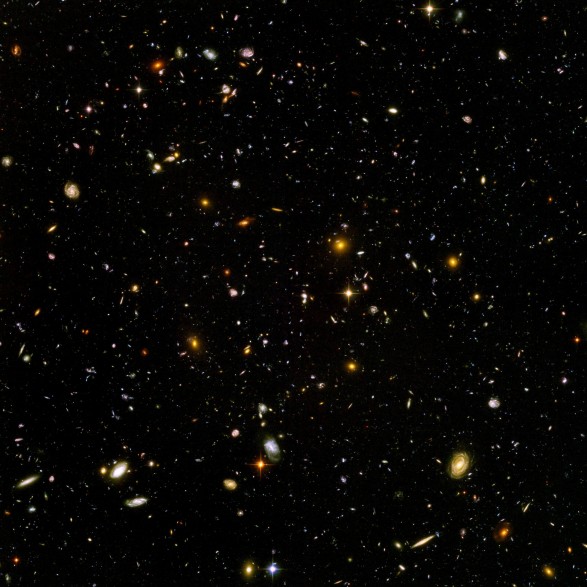 Ali vas zanima najgloblja slika, kar smo jih kdaj na Zemlji videli? Hubble je leta 1995 kar 10 dni zajemali svetlobo na koščku neba (velik kot teniška žoga oddaljena 100m od nas) in dobili zares revolucionarno odkritje. To je pogled na veliko različnih zmazkov, ki so od nas oddaljeni 12 milijard svetlobnih let in vsak ta zmazek predstavlja svojo galaksijo, kjer se nahaja več milijonov ali milijard planetov.