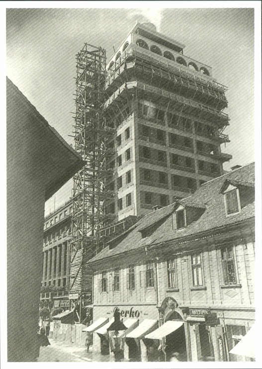 Pogled z Dunajske ceste 17. 6. 1932 na gradnjo nebotičnika.