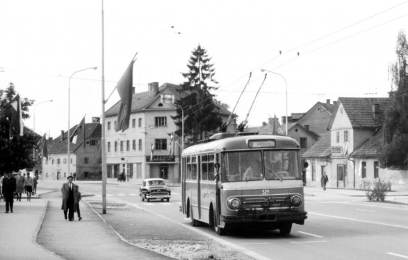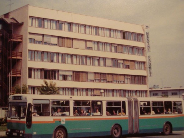 Avtobus IKARUS na Celovški cesti. Ikarus avtobusi so imeli sicer daleč najkrajšo dobo vožnje med vsemi avtobusi v Ljubljani. Na ljubljanskih ulicah so bili v uporabi le 4 leta (1985-1989).