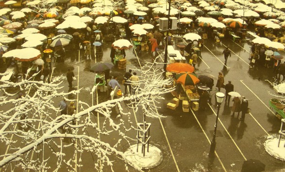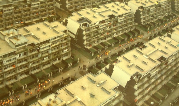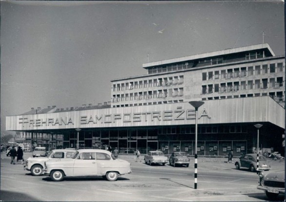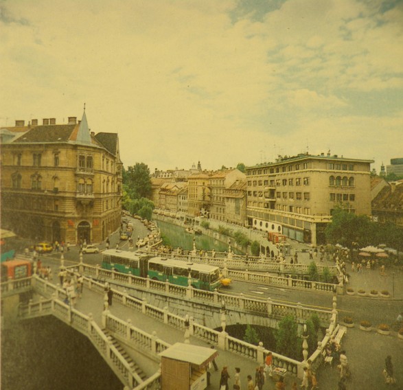 Sredina osemdesetih in pogled na avtobus, ki pelje čez Tromostovje.