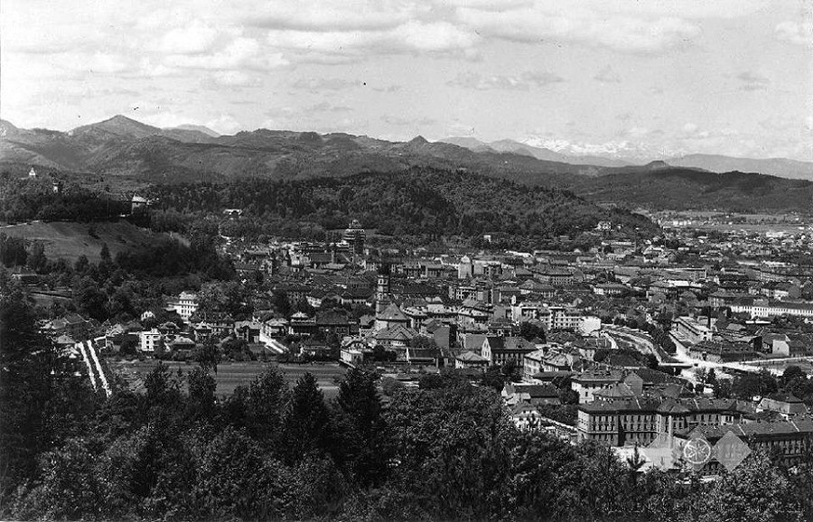 Posnetek z Nebotičnika pred izgradnjo Metalke